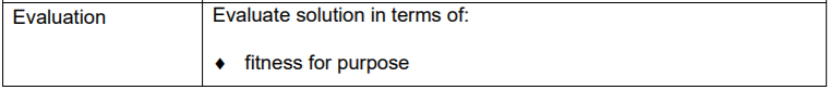 You should revisit the Analysis and Design stages when Evaluating your completed solution