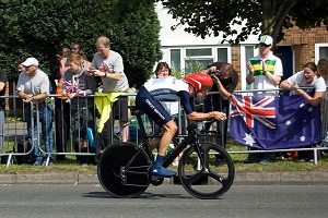 A time trial bicycle is designed for use in an individual or team time trials raced on roads. Since the cyclist in a time trial is not permitted to ride in the slipstream of other cyclists, reducing aerodynamic drag of the bicycle and rider is critical. Triathlon handlebars provided a low tucked position that is aerodynamic while providing good stability. Time trial races tend to be much shorter than road races, so comfort is less of an issue. Also, control of the bike is less important, since there is little chance of bumping another rider and the courses tend to be less technical with little hill climbing, turns or descents.