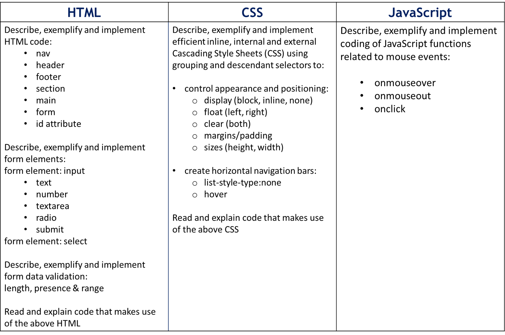 JavaScript events (onmouseover, onmouseout and onclick) are used to implement interactive web content.