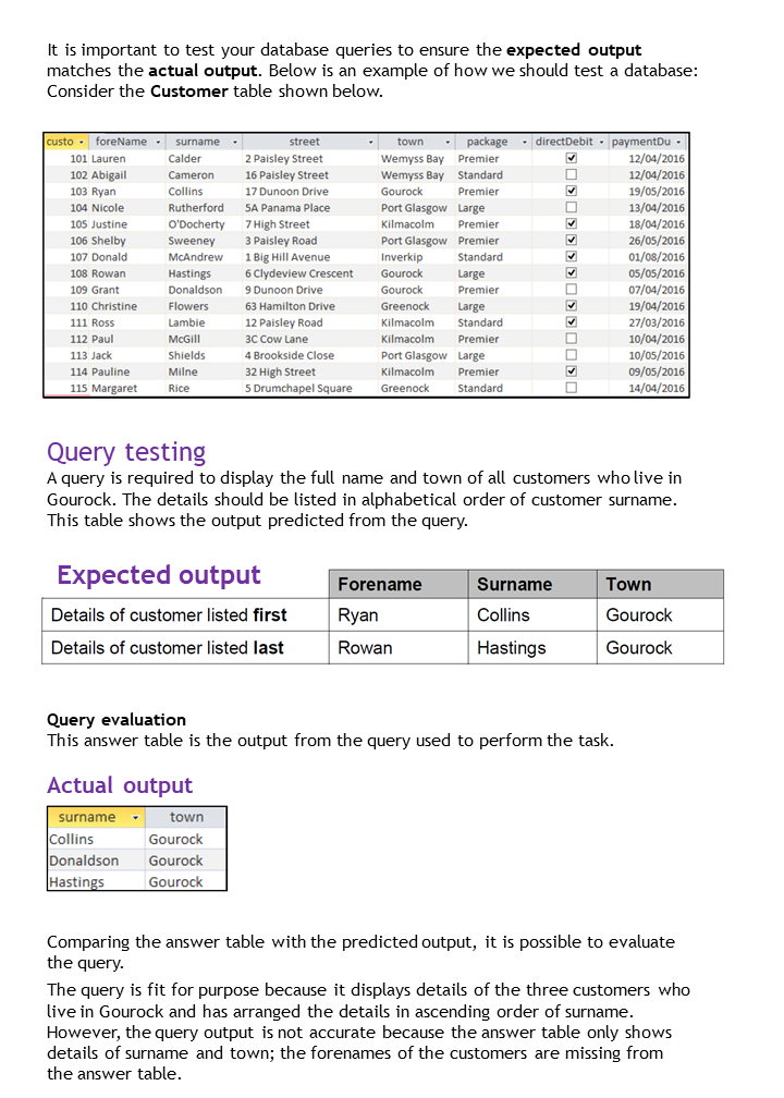 We have already discussed that you have to test and evaluate your output from the database to ensure that is correct.