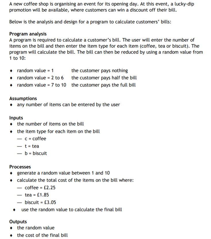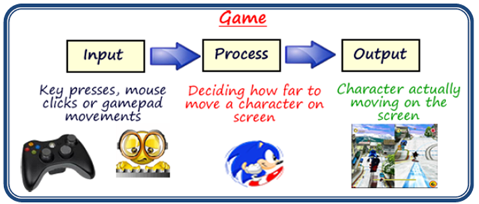 - Outputs are the data items that will be displayed by our program. This will usually be the result of what the program is supposed to do.