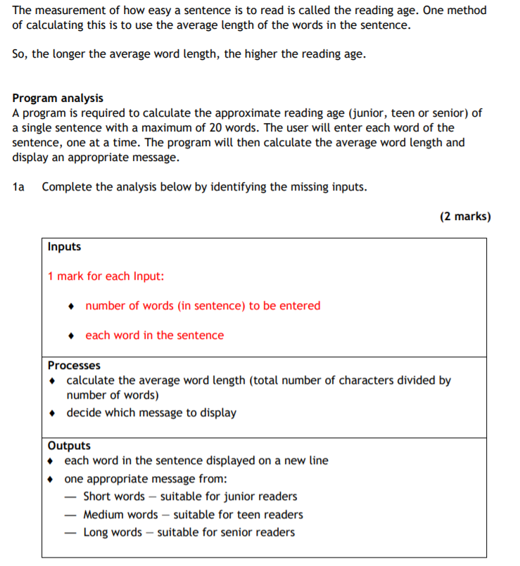 - Inputs are data items that must be entered by the user. Information we have to ask the user for. This is the data that the program will take in.