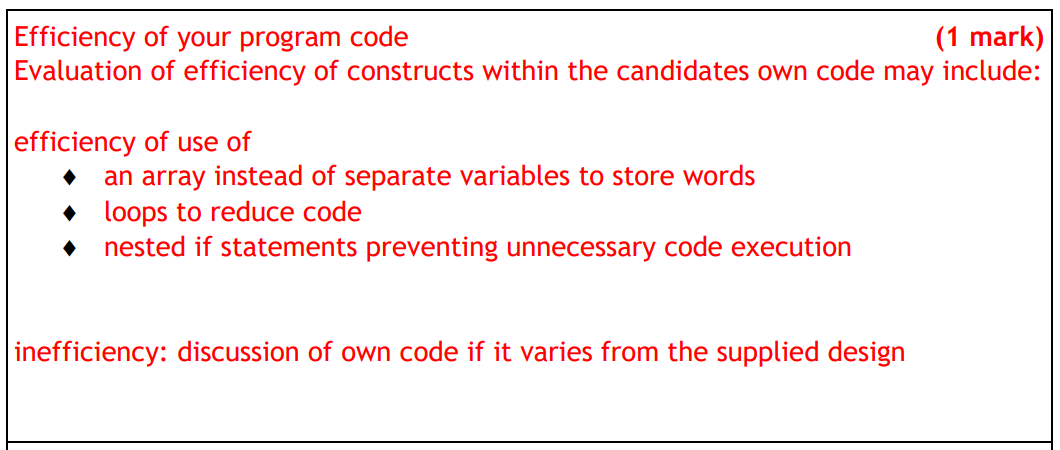 - Has the programmer used selection statements that will only make comparisons until a solution is reached? e.g. Nested ifs instead of seperate statements