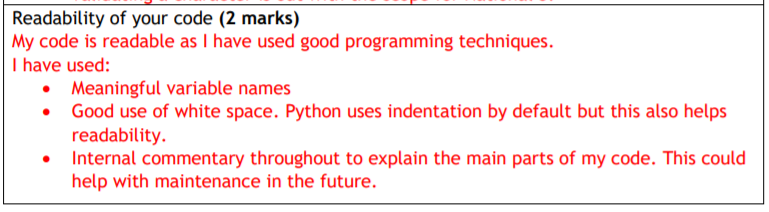 - Has the programmer used repetition (loops) where possible to reduce the amount of code?