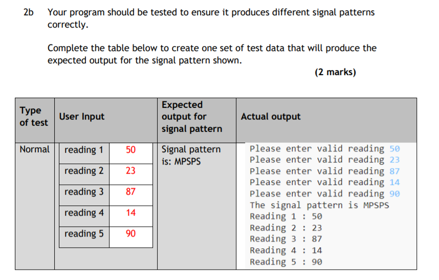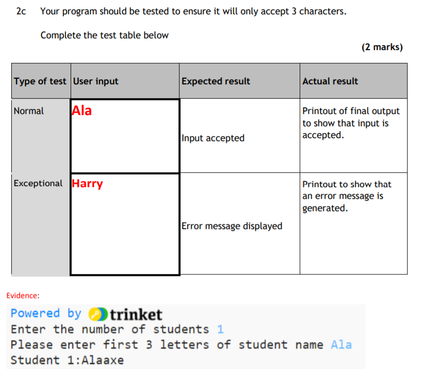 Example Testing Questions